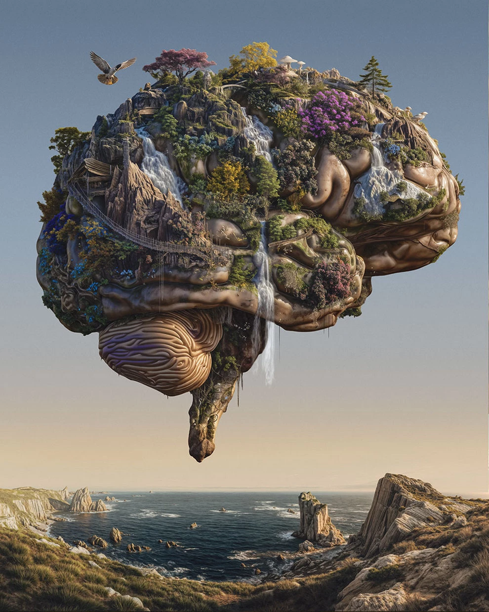 Mais Jeff ne se repose pas sur ses acquis : il est aujourd’hui à l’avant-garde de l’intégration de l’intelligence artificielledans le processus créatif. Loin d’y voir une menace, il utilise l’IA comme un pinceau supplémentaire pour pousser les concepts encore plus loin, explorant des thèmes émotionnels profonds comme dans son œuvre « Connaissez-vous même l’autre côté de vous-même ». C’est cette alliance entre l’artisanat du 20ème siècle et la technologie du 21ème qui rend son portfolio si unique.