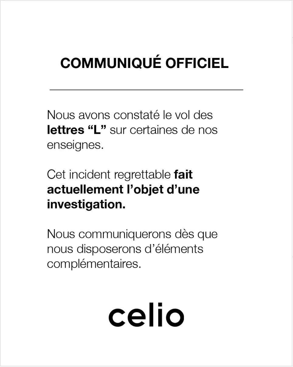 Pendant plusieurs jours, c’était le bug visuel qui rendait fous les Parisiens : les enseignes Celio perdaient leur lettre « L » une à une, laissant place à un étrange « Ceio » sur les devantures. Acte de vandalisme ? Défaut de fabrication massif ? Les théories du complot ont immédiatement enflammé les réseaux sociaux, poussées par des vidéos de vidéosurveillance montrant de mystérieux voleurs s’emparant de la lettre physique. Un suspense millimétré qui n’avait qu’un but : préparer le plus gros virage de l’histoire de la marque.